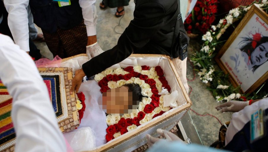 ВЕЛИКИ број људи у главном граду Мјанмара Нејпјидоу присуствовао је сахрани девојке, прве жртве убијене у протестима против војног пуча, само дан након што су снаге безбедности убиле још два демонстраната.