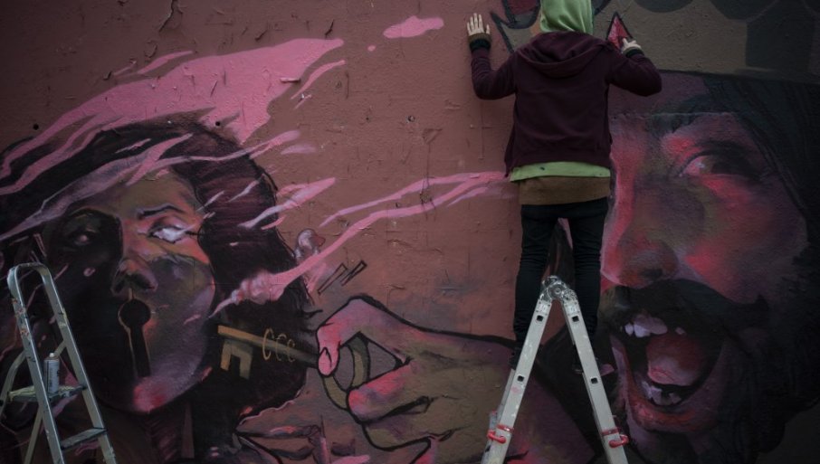 ХУАН КАРЛОС И ФРАНЦИСКО ФРАНКО НА МУРАЛУ: Мирна демонстрација уметника због хапшења репера Пабла Хасела (ФОТО)