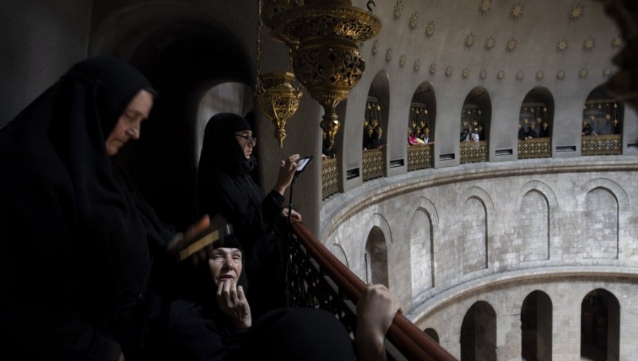 ЧУДО У ЈЕРУСАЛИМУ: Благодатни огањ сишао у Храм Гроба Господњег (ФОТО)