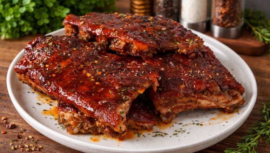 Ако тражите идеју за ручак који изгледа и мирише као из врхунског ресторана, а припрема се једноставно – овај рецепт је прави избор. Свињска ребарца печена споро у рерни постају невероватно мека, док их слатко-димљена глазура претвара у праву гастрономску сензацију. Јело које се топи у устима и без грешке постаје главна звезда трпезе.