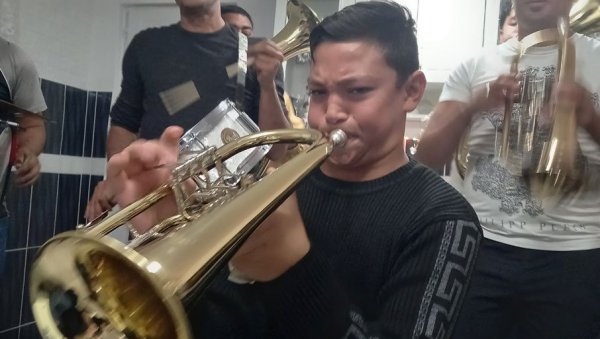 ТРУБОМ МИЛУЈЕ ДУШУ: Мали Михајло Зећировић, из Бојника, са 13 година својом свирком прешишао већ прекаљене виртуозе