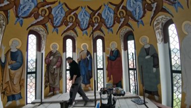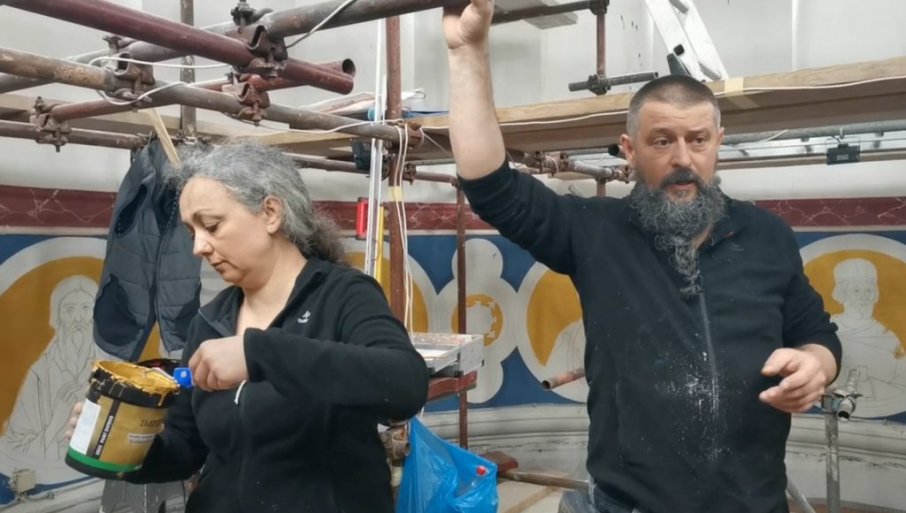 ПОЧЕЛО је осликавање више од 1.000 квадрата Цркве Свете Тројице у Трстенику, а јединствен подухват, који ће у храму подигнутом крајем 19. века, трајати читаве три године, тренутно се одвија на 22 метра висине! Ту је атеље брачног пара Атанасковић - Јована и Наташе, који осликавањем светаца оживљавају куполу цркве.