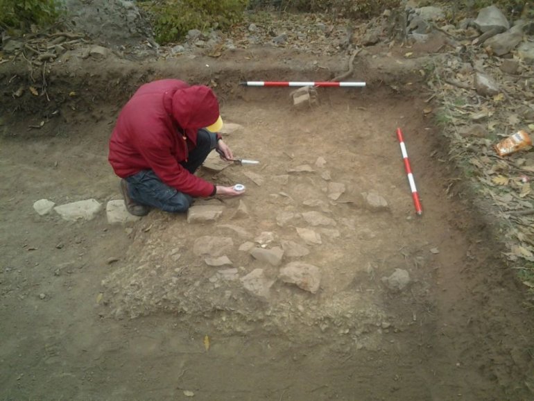 ГРАБОВАЧКА тврђава неретко је била на мети дивљих копача блага. Најозбиљније, 2012. године. Тада су трагачи изроварили део српске сред - њовековне грађевине, где су раније археолози започели истраживања. Уништили су тек пронађени малтерисани под, затрпали археолошку сон - ду, а откривени скелет детета оставили на милост и немилост дивљим животињама.