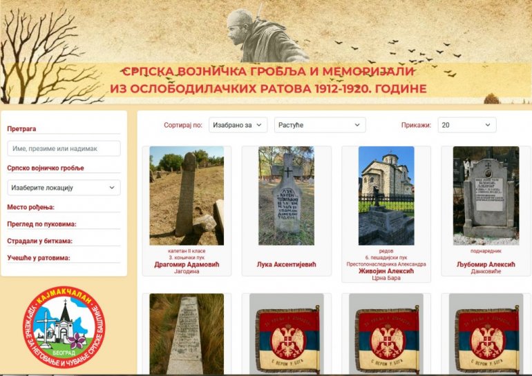 БЕЛЕЗИ ЈУНАКА У 3Д ФОРМАТУ: У бази података имена, места страдања и упокојења - дигитална платформа о гробовима српских војника