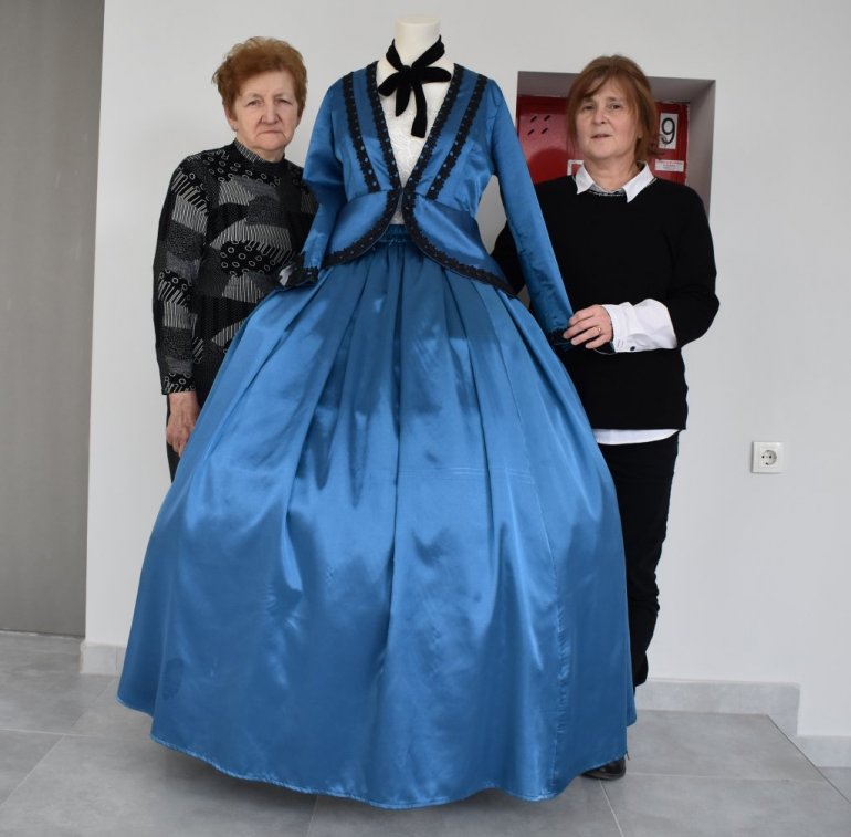 - Трудиле смо се да хаљина буде верна времену у којем је Мила живела. Три пута смо ишле у Београд да би пронашле материјал баш те специфичне, посебне плаве боје, петролеј нијансе, који ће имати потребан сјај, не прејак да не би изгледао вештачки.
