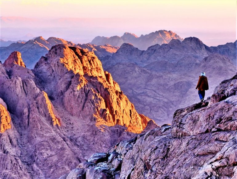 БЕДУИНСКО племе Џебелија чије име у преводу гласи "Горштаци" обитава у планинама Синајског масива на југу полуострва и чува Манастир свете Катарине око Горућег грма из кога се Мојсију јавио Бог. С поносом истичу да су "племе братства" трећином Арабљани, трећином Египћани, а трећином потомци војника које је цар Јустинијан довео у 6. веку са Балкана да чувају светињу. Од тада се они непоклобљиво држе завета чувара, иако су одавно прешли у ислам. Путник се замисли над смислом верских сукоба док посматра муслимане Џебелије спремне да дају живот за хришћанску светињу док се клањају крај њених зидина.