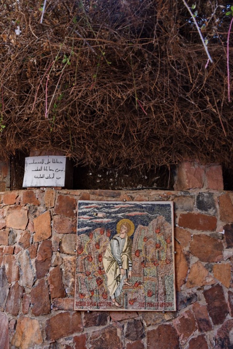 Светиња подигнута око Горућег грма из кога се Мојсију јавио Бог окружена је високим голим планинама и окрутном пустињом. На простору је где се одвајкада сукобљавају непокорна номадска племена бедуина са властима многих држава које су формално контролисале Синајско полуострво. Од 7. века манастир Свете Катарина потпуно окружује свет ислама, који је настао на суседном Арабијском полуострву. На Синају су ратовале војске Рима, Византије, исламских Калифата, крсташког Јерусалимског краљевства, Османског царства, Египатског султаната, Наполеонове трупе, модерни Израел против Египта, џихадисти Исламске државе против свих...