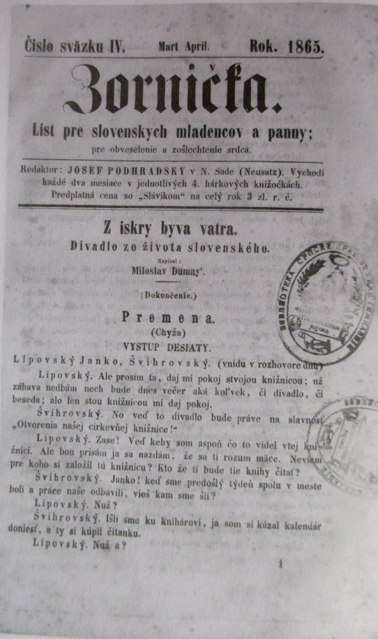 - Песник и драмски писац Јосиф Подградски (Jozef Podhradsky, 1823-1915) подједнако је припадао словачкој и српској култури. Од ране младости био је одвојен од свог народа. За свог дугог живота у Србији, где је умро и сахрањен, био је непоколебљиво одан словачком националном питању, али прихвата српски језик и културу, свесрдно шири православну исповест. Рођен је у малом месту Скалица на словачко-моравској граници. Студирао је евангелистичку теологију на лицеју у Братислави. Био је близак пријатељ Светозара Милетића, подржавао је борбу за српску самосталност. Тада постаје један од првих следбеника Људевита Штура, кодификатора словачког језика, члан групе романтичара око њега и пријатељ низа српских интелектуалаца - објашњава Зденка Валент Белић.