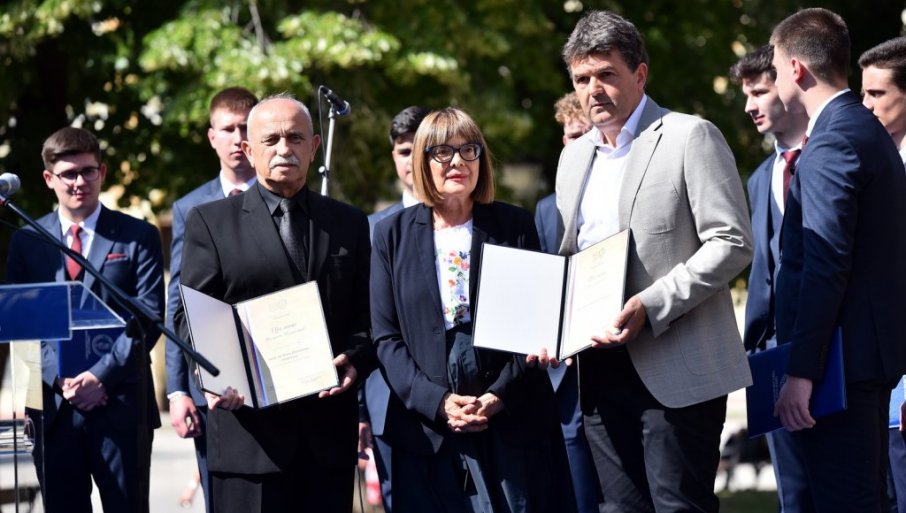 ПОВОДОМ сећања на Мајску скупштину, председница Покрајинске владе Маја Гојковић уручила је проф. др Божи Далмацији, емеритусу Природно-математичког факултета Универзитета у Новом Саду, покрајинско признање "Милутин Миланковић". Награда "Павле Јовановић" додељена је Уметничкој ливници "Станишић"