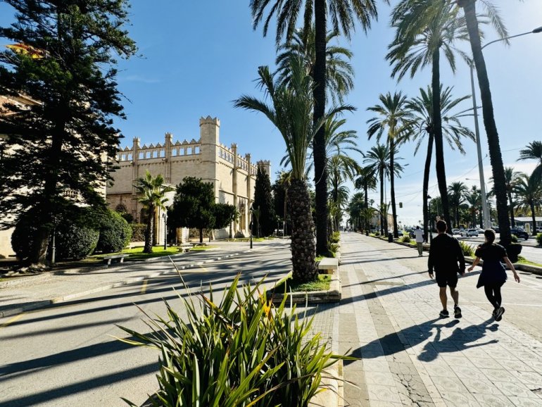 У Палми, река туриста истражује чари уских камених улица старог језгра, обилази краљевску палату Алмудаина, ремек-дело готске архитектуре палату Ла Лођа, хамам као једно од последњих арапских трагова, чувену катедралу Ла Сеу чија је градња започела 1229. године, другу најдужу у Шпанији, са 109 метара, иза оне у Севиљи, чију унутрашњост је у свом шарено-стакластом стилу редизајнирао славни архитекта Антони Гауди. Ђаци из школе под будним оком наставника физичког уче вештину успињања уз оближње зидине, изнад луке с прескупим јахтама.