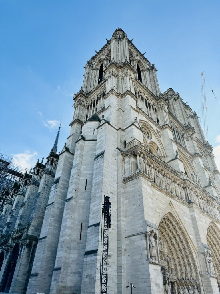 Када је, пред очима ражалошћеног света, 15. априла 2019. године букнуо пожар на овом светском бисеру сакралне архитектуре, мало ко је веровао да ће бити овако брзо и квалитетно обновљена. На рестаурацији савременице наше Студенице, чија је градња започела 1163. године, било је ангажовано више од две хиљаде архитеката, занатлија и радника из 250 предузећа. Њихова имена уписана су на траци и смештена у врху обновљеног торња.