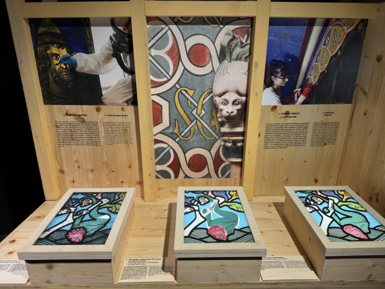 Оригинални витражи су враћени у цркву, али су овде изложени нацрти у реалним димензијама. Ту је и велика макета катедрале. Објашњен је сваки поступак, од доласка уметнина у атеље, до завршетка радова. Могу чак да се чују и звуци оргуља и звона. Поставка ће трајати до маја следеће године. Приређује се организовани обилазак, а мајстори одлазе и у школе да би се деци предочили уметничку црту извршених радова.