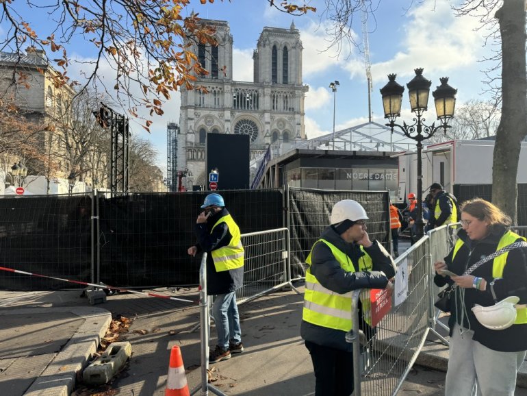 Напољу, већ сада се тиска велики број ходочасника. Бразилски водич упућује туристе из своје земље о току радова. Мелани, британског порекла, која у Француској живи последњих тридесетак година, дошла је овде са кћерком Лиси да јуче прослави свој рођендан.