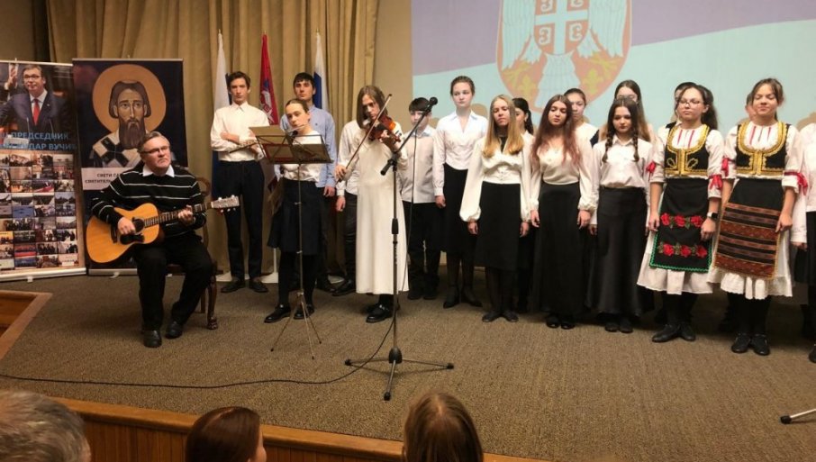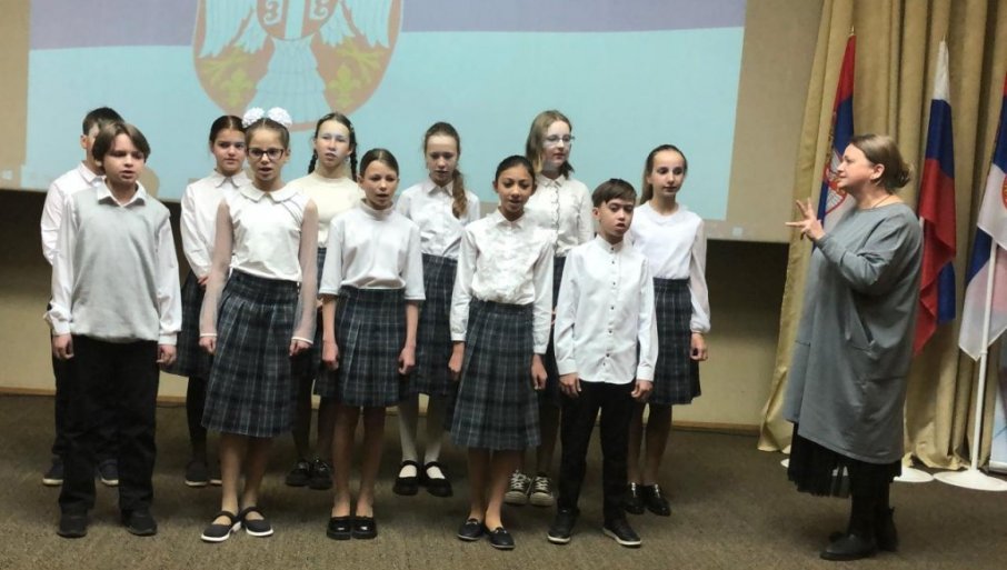 Пред препуном салом у српској амбасади посебан утисак оставио је хор Православне класичне гимназије из московског Ховрина, певајући песме "Косово", "Романија" и "Хајте браћо белој цркви". Одушевили су и ученици 7, 8. и 9. разреда ове гимназије и добили велики аплауз за изведбу песме "Ми смо деца неба". За то је, наравно, велика заслуга њихових наставника музичког образовања Нине Јастребове и Марине Обижајеве.