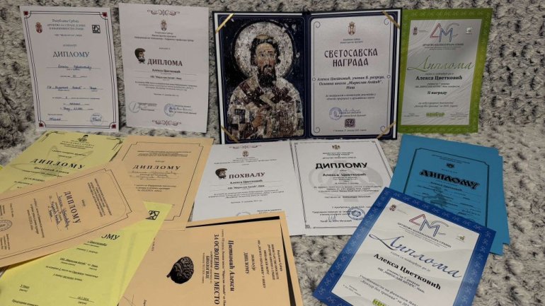 УЧЕНИК 8. разреда ОШ "Мирослав Антић" из Ниша Алекса Цветковић један је од добитника Светосавске награде за свестраност и постигнуте резултате у области природних и друштвених наука.