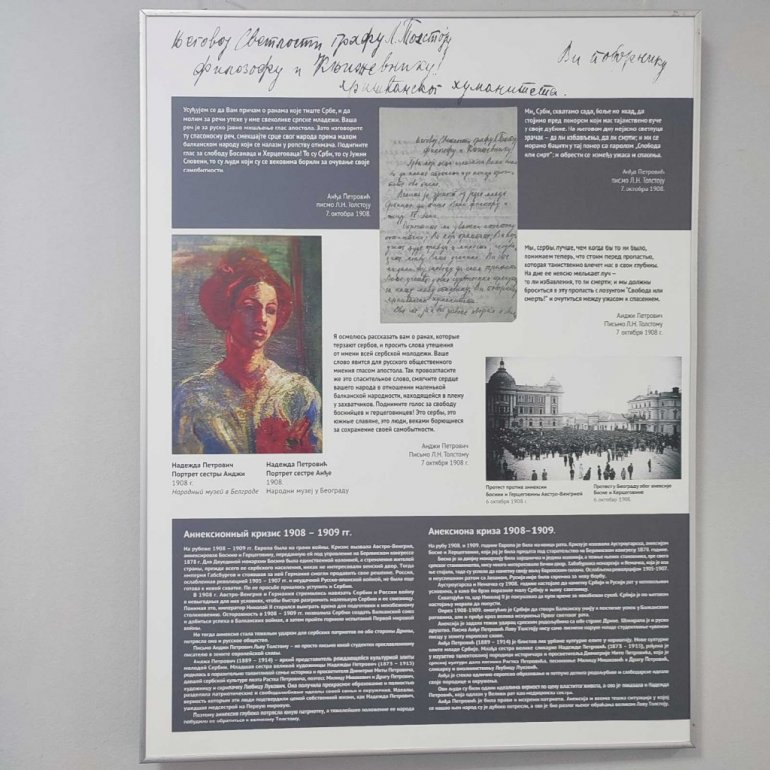 КРАТКА преписка Анђе Петровић, рођене сестре Надежде и Растка Петровића, и великог руског писца Лава Толстоја, о аустроугарској анексији БиХ, из октобра 1908, ушла је у историју светске књижевности јер је одговор писца младој Српкињи било последње писано дело које је објавио за живота.