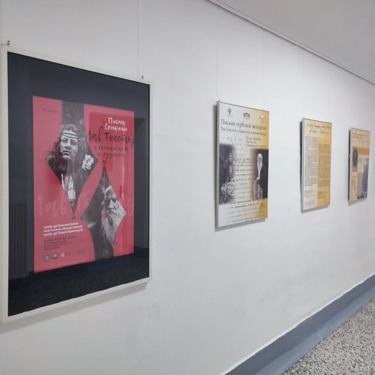 ИЗЛОЖБА "Писмо Српкињи. Лав Толстој о божанском и људском" настала је поводом обележавања 115 година од Анексионе кризе. Припремили су је сарадници Државног музеја Лава Николајевича Толстоја из Москве, на чијем челу је Владимир Толстој, праунук великог писца, а у Бањалуку и Центар за руске студије Филолошког факултета стигла је захваљујући сарадњи са Руским домом у Београду и залагању др Георгија Енгелхарта. На отварању су се обратили декан Филолошког факултета у Бањалуци проф. др Биљана Бабић, руководилац Института за хуманистичке и друштвене науке Филозофског факултета проф. др Бошко Бранковић и асистент Галина Марија Мићић.