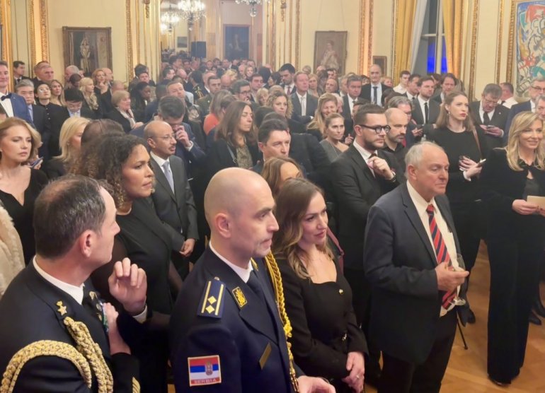 На синоћном пријему поводом Сретења био је присутан велики број званица. Зграда резиденције, у непосредној близини Ајфелове куле, била је светлима обојена у боје српске заставе. На улазу, званице су дочекивале чланице париског Културно-уметничког друштва "Извор" у спрским ношњама, са хлебом и соли, а интониране су и српска и француска химна.