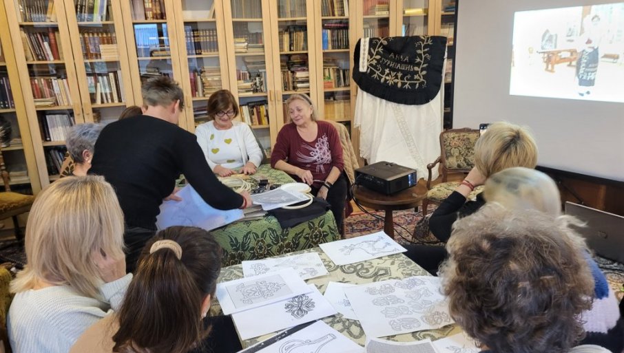 - Међу том баштином, у њеном текстилном делу, сачувана је и стара сатенска кецеља, декорисана техником златовеза, коју је почетком 20. века, извезла и носила Анђелија Јурибашић, удата Оцић - прича нам њена праунука Дејана. - Тако су чланови Удружења дошли на идеју да оживе и ту врсту вештине, па су организовали радионицу златовеза.