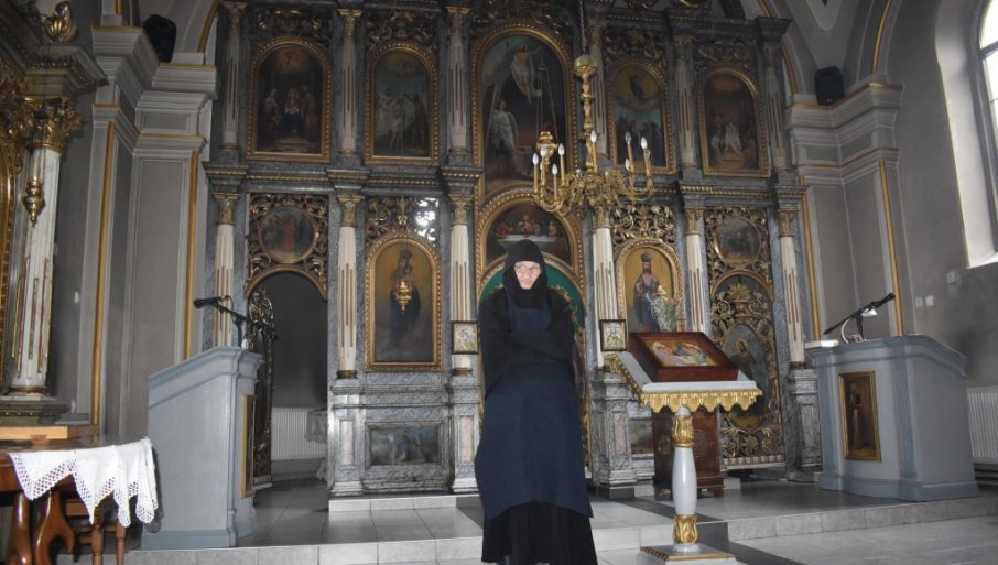 - Недељом буде око тридесетак верника, али радним данима најчешће не дође нико, само смо ту нас две и свештеник. Понекад још неко сврати, али ретко. Суботом буде некада још пар душа – прича сестра Василија, која је овде дошла из манастира Св. Меланије у Зрењанину, где је била 36 година. Рођена је у Босни. Доброг је здравља, али има проблем са гласним жицама, па каже, да „крчи“ кад пева. Пије и лекове на биљној бази, али опоравак је спор.