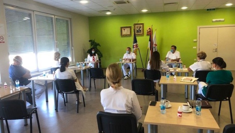 У болници “Врачеви" је одржан састанак болничког Кризног штаба у проширеном саставу са клиничким епидемиологом професором др Биљаном Мијовић на ком је, између осталог, разматрана тренутна епидемиолошка ситуација и договорене активности на заштити од интрахоспиталних инфекција ковида 19.