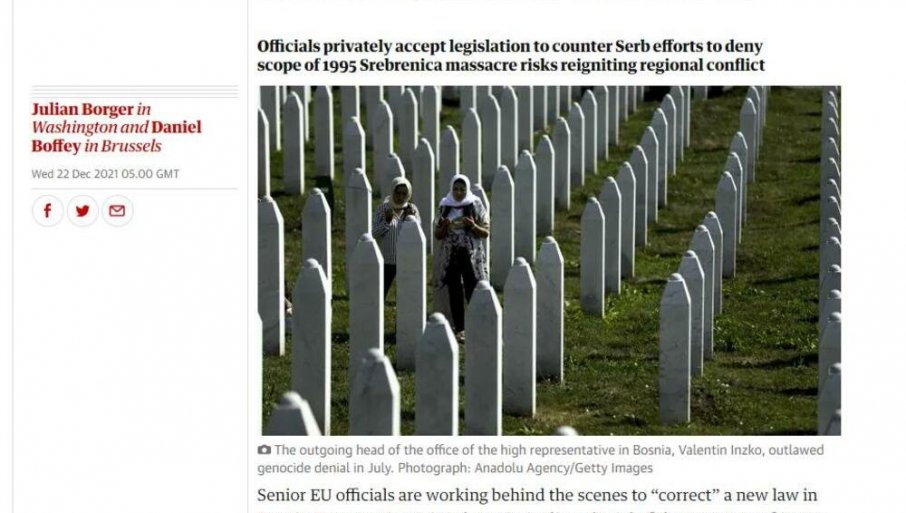 ГАРДИЈАН ОТКРИВА: ЕУ тајно мења закон о геноциду у БиХ из страха од новог сукоба?