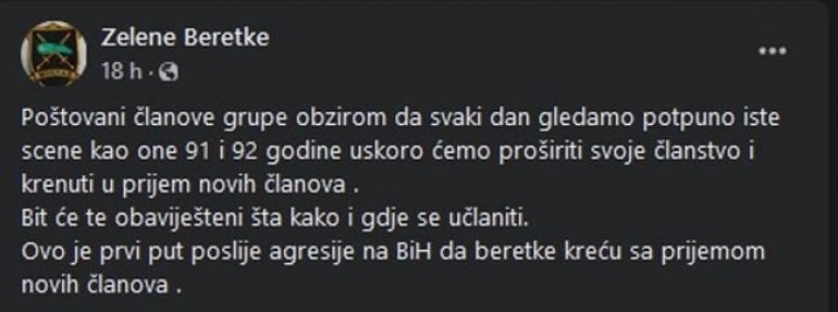 - Поштовани чланови групе, с обзиром на то да сваки дан гледамо потпуно исте сцене као оне из 1991. и 1992. године, ускоро ћемо проширити своје чланство и кренути у пријем нових чланова. Бићете обавештени шта, како и где се учланити - пише у поруци.