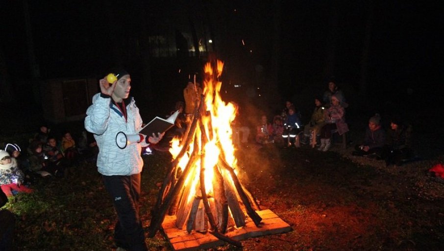 ДЕЦА узраста од 5 до 12 година из Угљевика у организацији Школе спорта „Мали шампиони" вечерас су шетали до засеока Вучијак у Месној заједници Стари Угљевик на домаћинству Томића палили логорску ватру уз загонетне приче, активности и игре са лампама.