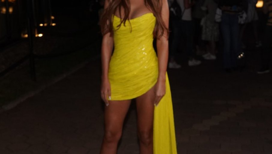 АНАСТАСИЈА БЛИСТА У ЖУТОЈ ХАЉИНИ: Певачица стигла на рођенданску журку (ФОТО)
