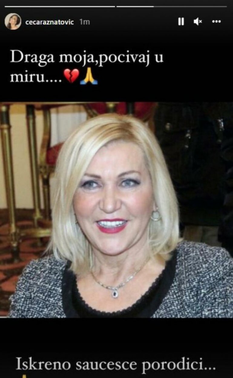 - Драга моја, почивај у миру... Искрено саучешће породици - написала је Цеца на Инстаграму уз емотикон сломљеног срца.