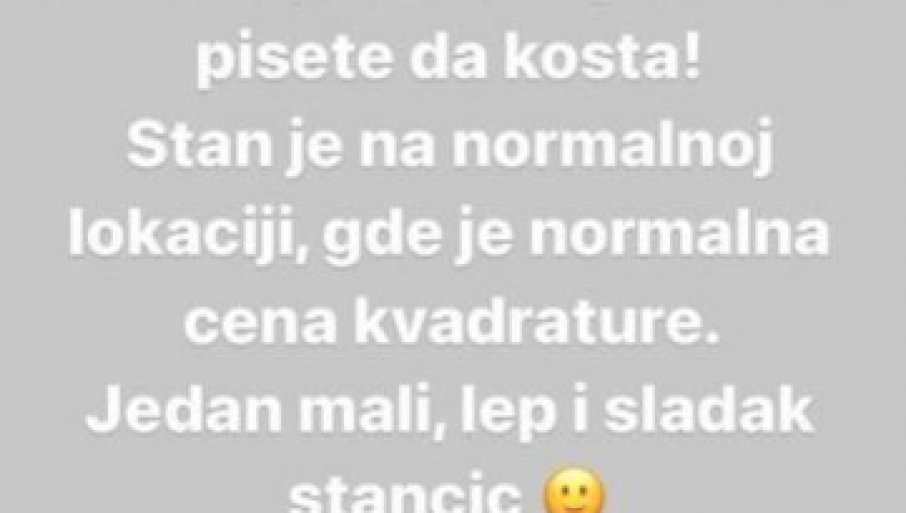 - Мој стан не кошта колико сте већ почели да причате и пишете да кошта! Стан је на нормалној локацији, где је нормална цена квадрата. Један мали, леп и сладак станчић! - поручила је Теодора Џехверовић на свом Инстаграм сторију.