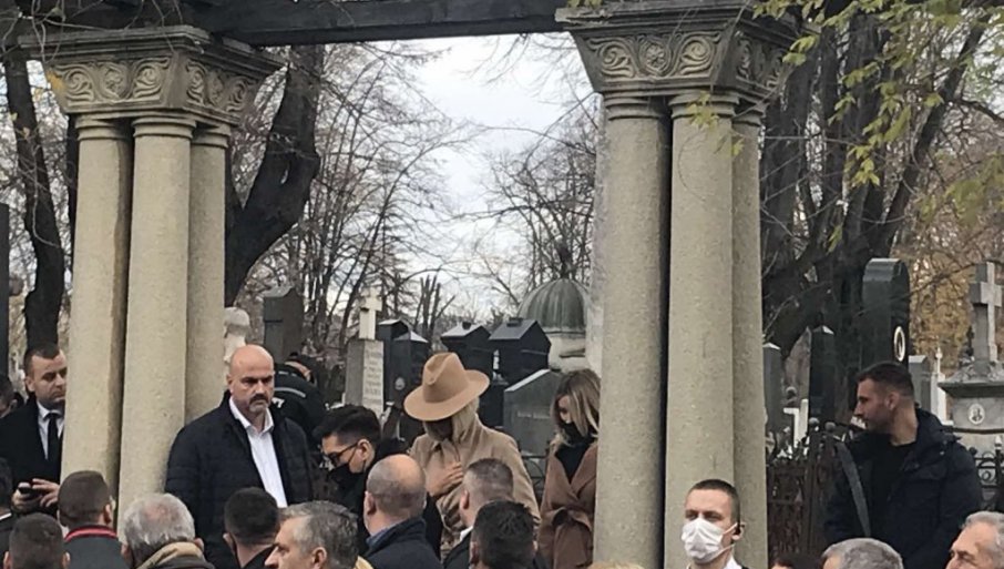 ПЕВАЧИЦА Јелена Карлеуша стигла је на Ново гробље, где ће присуствовати сахрани Милутина Мркоњића.