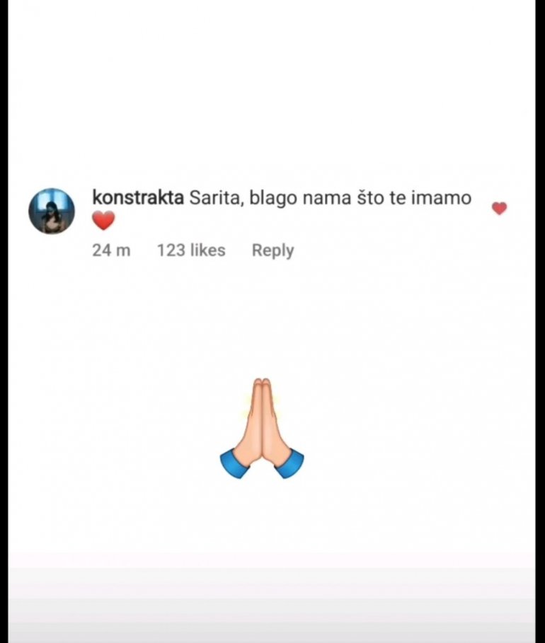 Констракта није остала имуна на Сарине речи, те јој се у коментару испод објаве и захвалила: