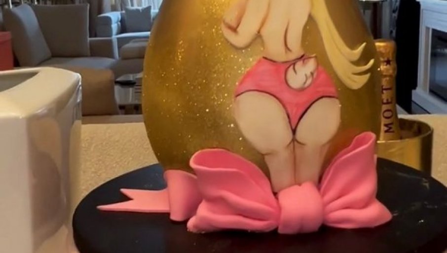 Осим слаткиша, Јелена је снимила и скупоцени шампањац са "ЈК" натписом који је направљен од ситних светлуцавих каменчића.