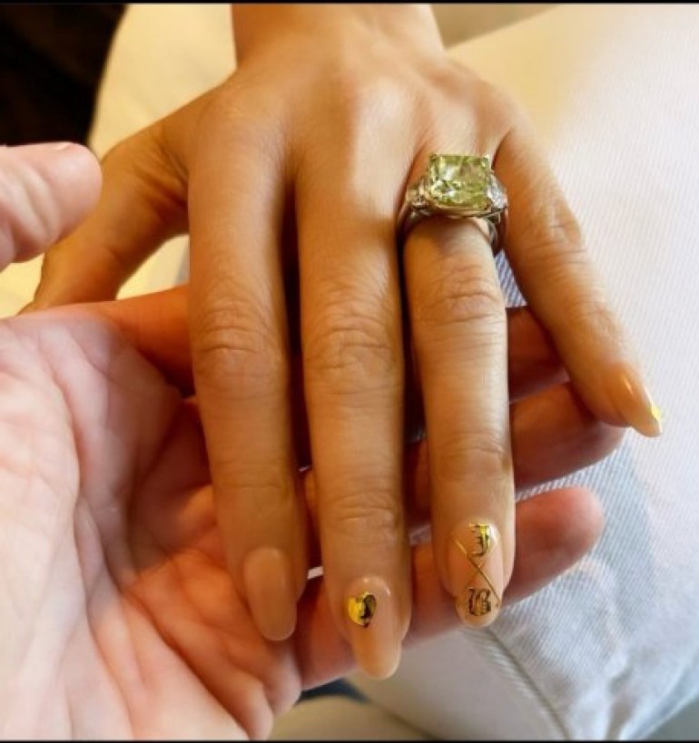 Популарна певачица и глумица је тако, поред златног срца на једном прсту, замолила свог маникир мајстора да утисне "Џ и Б" на домали прст.
