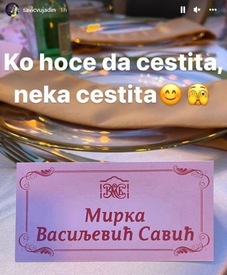 Вујадин Савић је, наиме, на свој Инстаграм профил поставио фотографију, на којој видимо да на једној картици на столу за којим седи његова изабраница пише - Мирка Васиљевић Савић. Ово је одмах покренуло приче да су се венчали, те да је глумица свом презимену додала и његово.