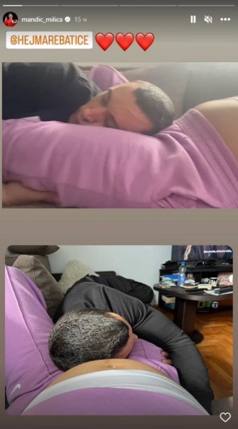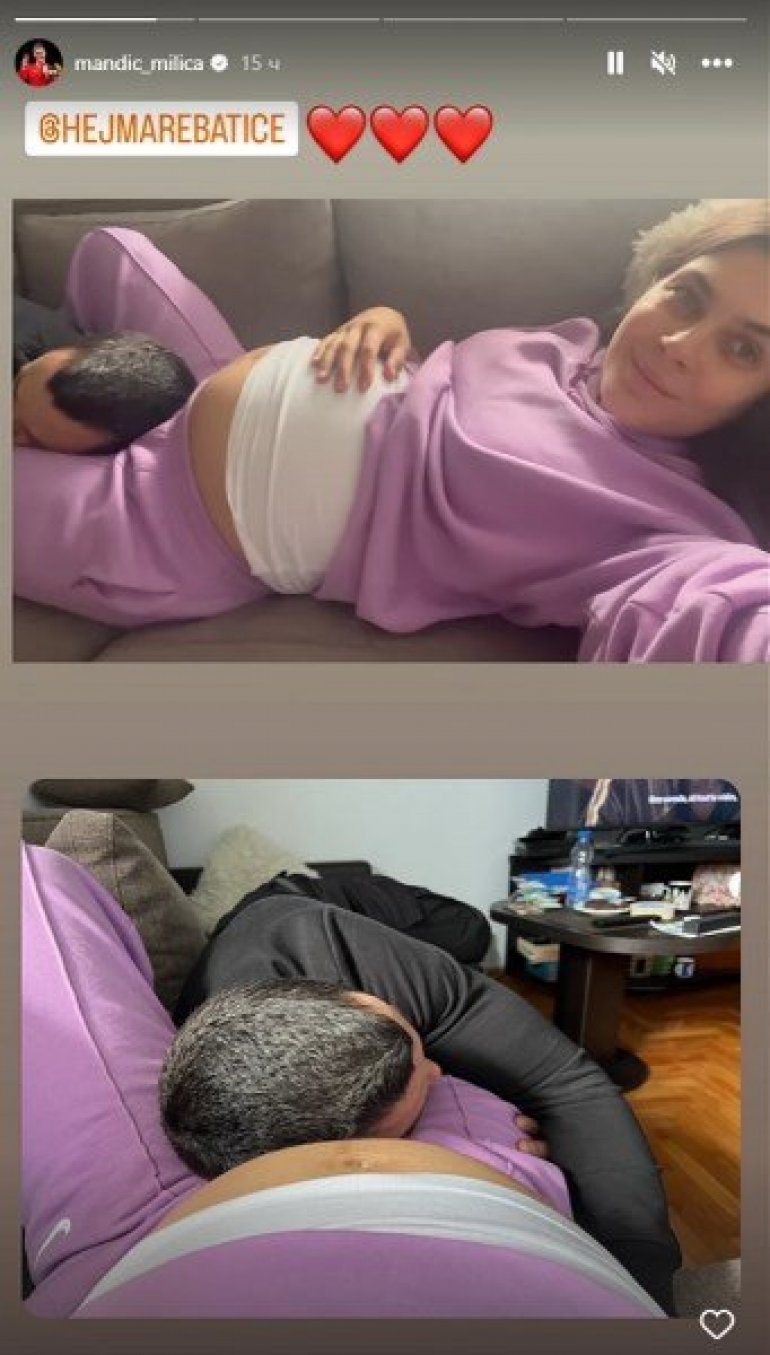 Мандићева је уснимила себе како лежи на кревету у дневном боравку, а у првом плану је, поред стомака, био и њен супруг, који је заспао грлећи је.
