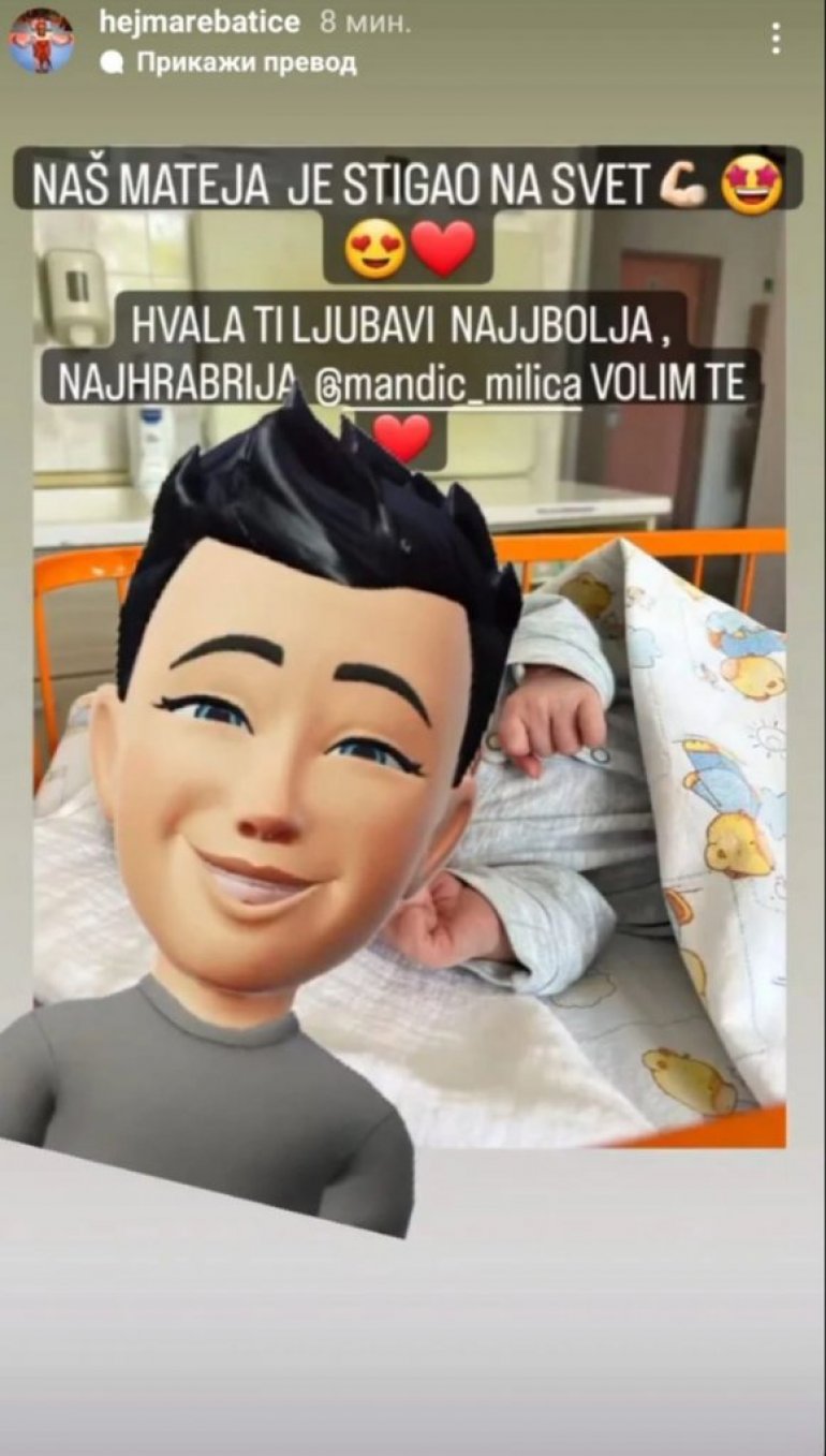 - Наш Матеј стигао на свет. Хвала ти Милице љубави, најбоља и најхрабрија. Волим те! - поручио је супруг Марко путем Инстаграма.