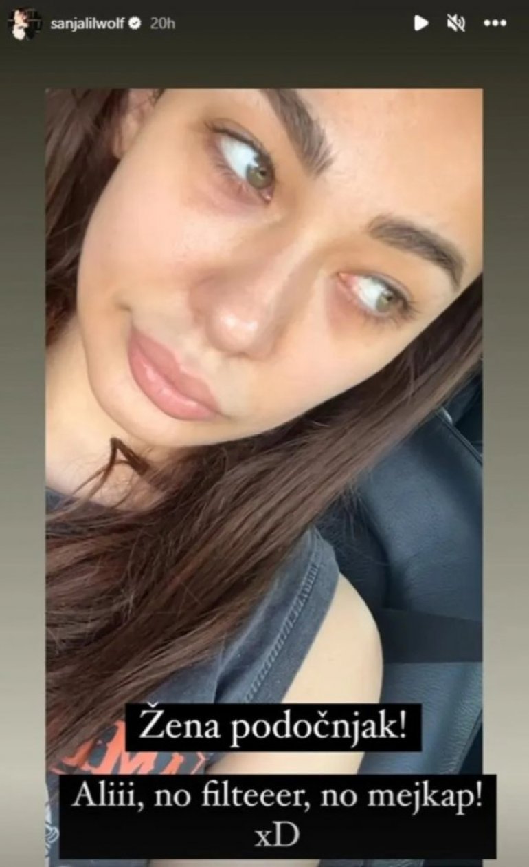 – Жена подочњак! Али, нема филтера, нема шминке – написала је певачица.
