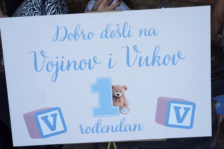 ПОПУЛАРНИ ПЕВАЧИ И БРАЧНИ ПАР Ивана Павковић и Петар Митић јуче су близанцима Војину и Вуку прославили први рођендан.