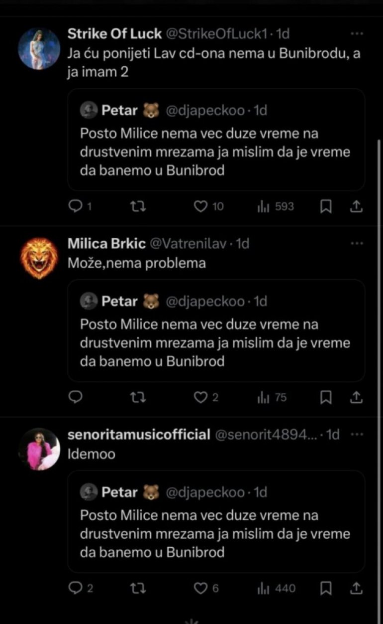 - Пошто Милице нема већ дуже време на друштвеним мрежама ја мислим да је време да банемо у Буниброд - један је од коментара забринутих фанова, док су се многи надовезали и сложили са њим.