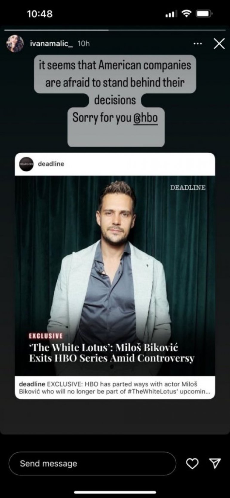 - Чини се да се америчке компаније плаше да стану иза својих одлука. Жао ми је због вас ХБО - написала је Ивана.