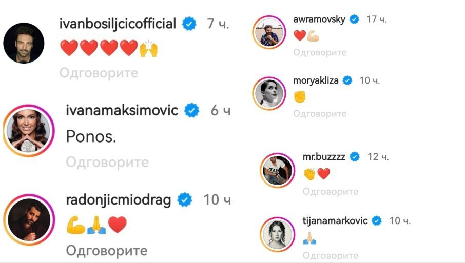Много коментара подршке стигло је и испод његовог саопштења. Фото принтскрин Инстаграм