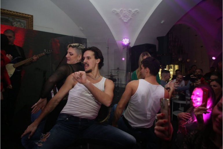На бину су изашла четири професионална плесача који су дамама приредили "рај за очи" и направили атмосферу за препричавање.