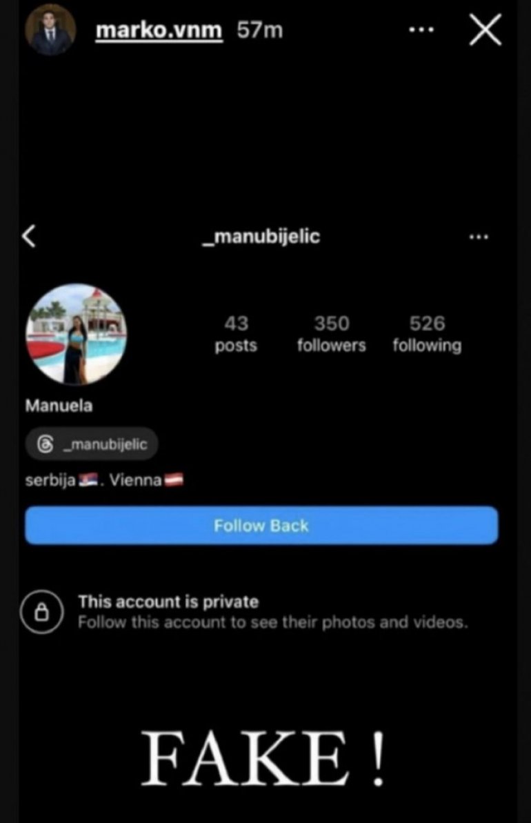 Како је већ објављено, на друштвеним мрежама појавио се лажни профил Мануеле Бијелић.