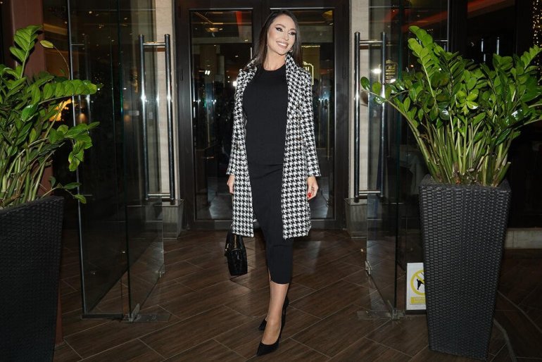 Каћа се до сада неколико пута појављивала се у јавности, у крајње смелим комбинацијама, а сада за вечерашњни излазак се определила за нешто сведенију варијанту, у црној дугачкој хаљини, а преко је носила карирани капутић.