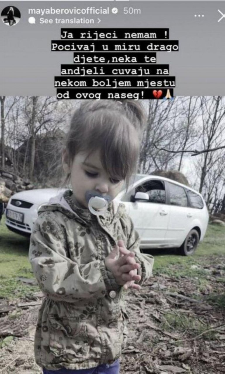 ОД убијене Данке Илић (2) опраштају се бројне јавне личности којима се сада придружила и певачица Маја Беровић, која је протеклих дана на свом Инстаграм профилу качила информације о нестанку девојчице и молила људе да се укључе у потрагу.