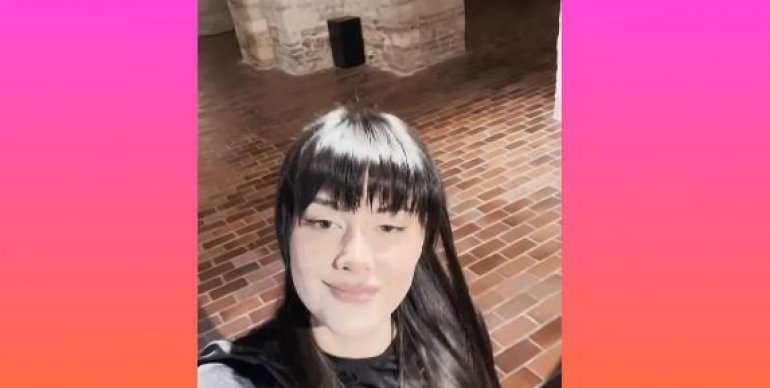 Она се на бини појавила у лила хаљини, која симболише цвет о којем пева.