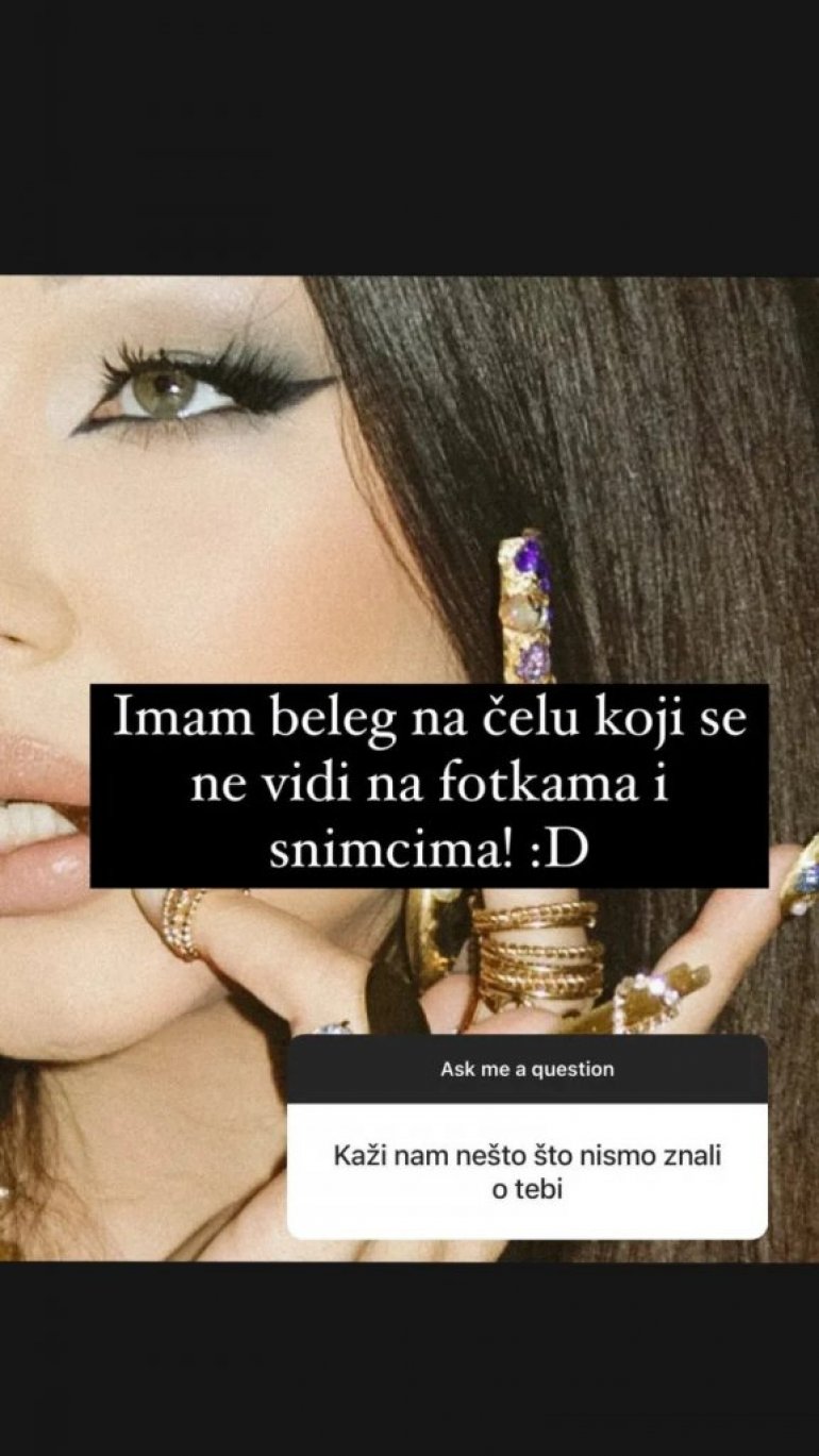 -Имам белег на челу који се не види на фоткама и снимцима – признала је Сања, на захтев фанова да им открије нешто о себи што до сада јавност није знала.
