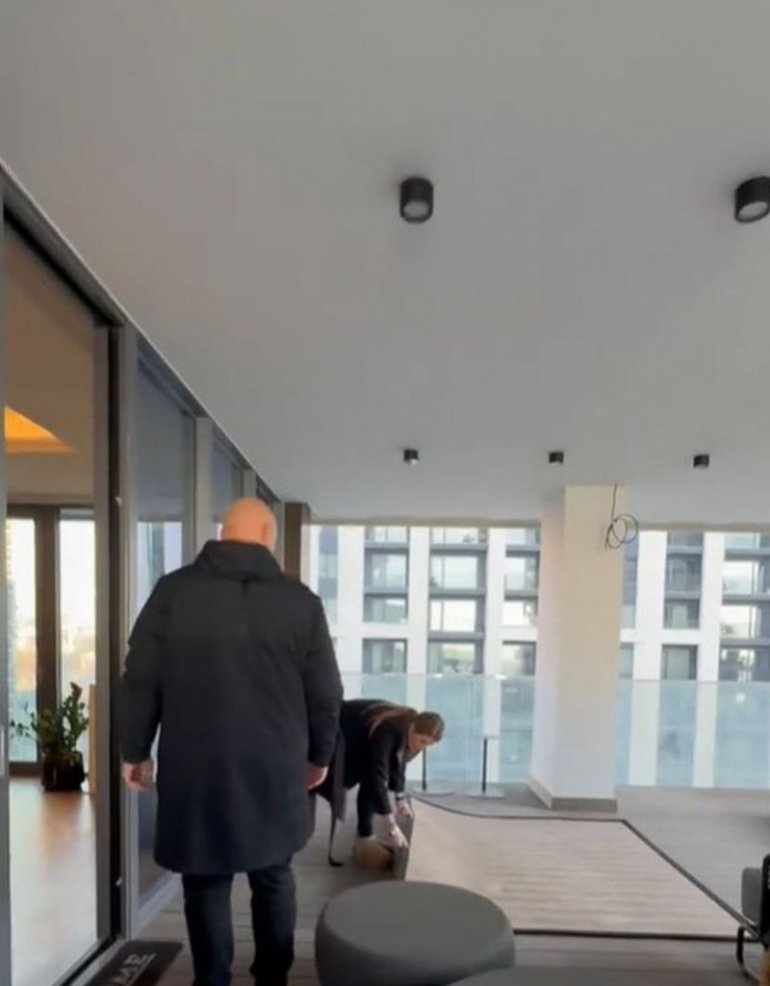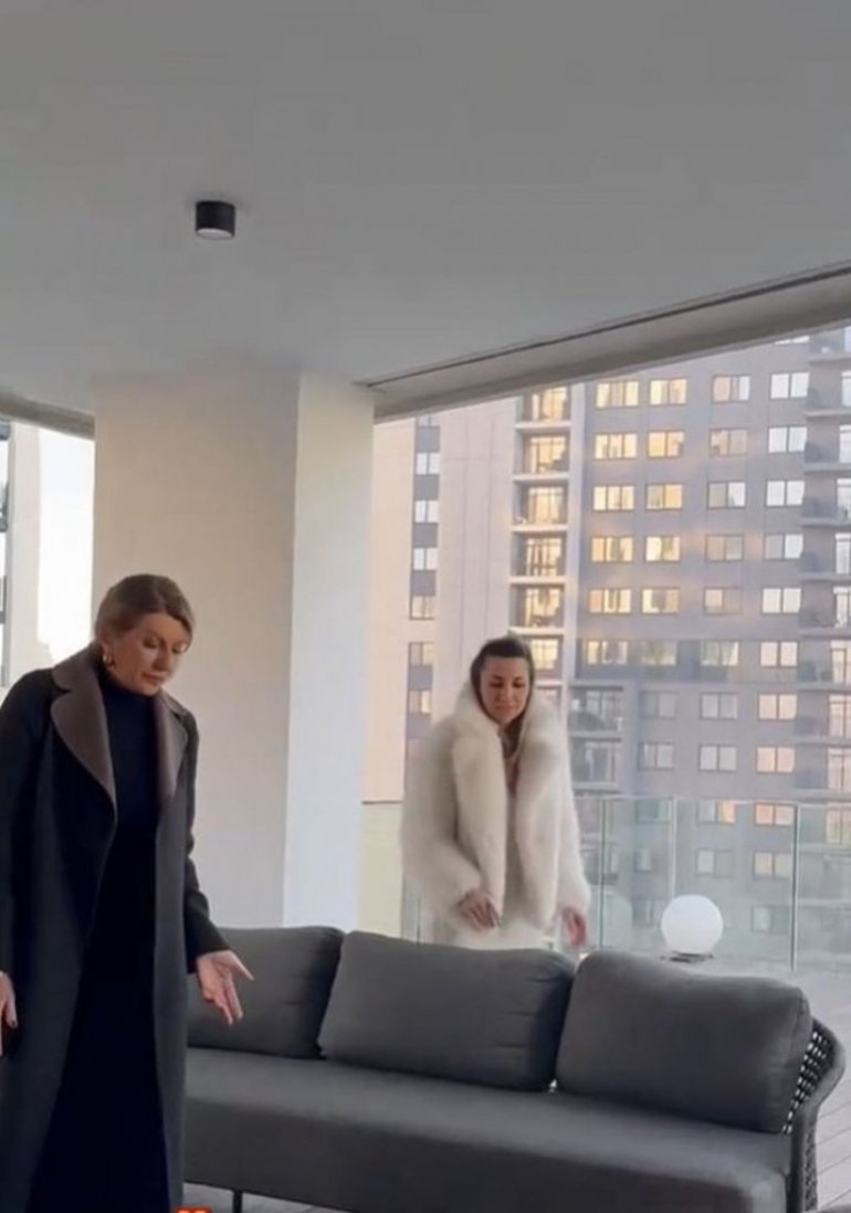 Простор у потпуно стакленој згради са огромном терасом, чине комади намештаја, од којих застаје дах. Како Виолета важи за перфекционисту и воли да јој је све на свом месту, фолк звезда „упослила“ је и свог супруга да уноси намештај и учествује са њом у уређивању пословног простора.